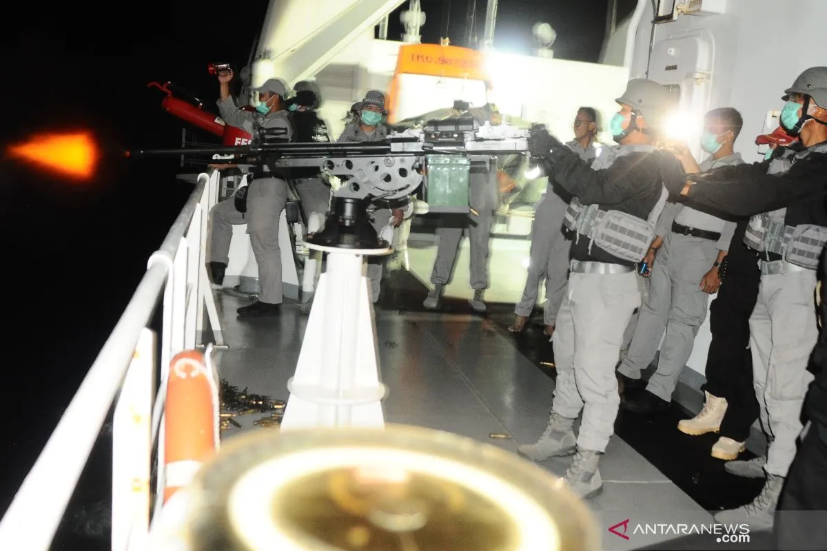 Senjata yang digunakan dalam latihan merupakan jenis Senapan Mesin Berat SM-5 kaliber 12,7 mm produksi dalam negeri yang dibuat oleh PT. Pindad. “Senapan mesin berat produksi Pindad ini sudah teruji kehandalannya. Mampu menembakkan proyektil 12,7mm secara semi otomastis dan otomatis. Latihan ini berlangsung lancar dan sesuai perencanaan” ujar Laksma Bakamla Sandy Latief.