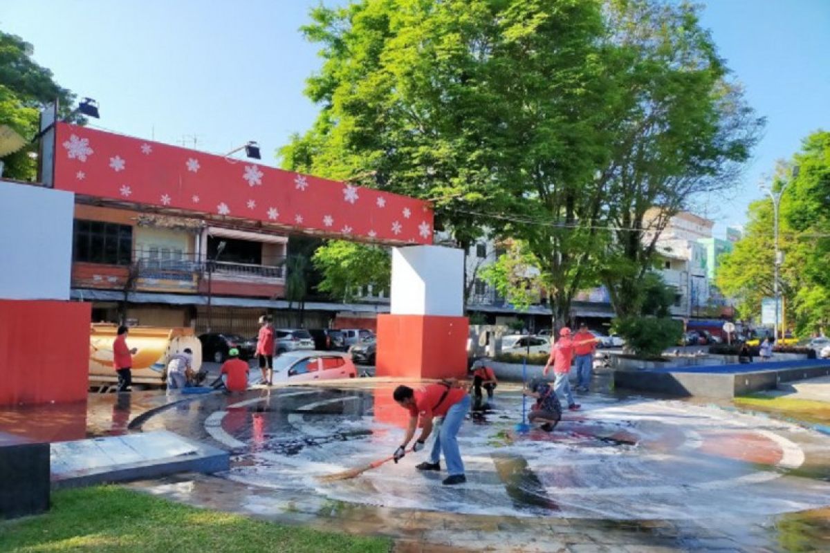 "Selain juga membersihkan pompa air, toilet dan penampungan air mancur, " kata Porawouw.