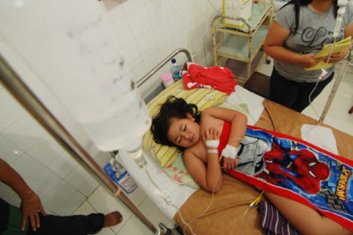 Erica (8) pasien yang terkena demam berdarah dengue (DBD) dirawat di Rungan Perawatan Intensif (RPI) RSU Prof. DR. Kandou, Manado, Sulawesi Utara, Rabu (20/3). Data rumah sakit tersebut tahun 2012 sebanyak 420 pasien DBD dari 236 Pasien DBD dan 184 Pasien Dengue Syok Sindrom (DSS) sadangkan pada Januari-Maret 2013 sudah mencapai 149 pasien DBD dari 77 Pasien DBD dan 72 Pasien DSS. ada pun angka kematian sebanyak sembilan orang pada 2012 dan lima orang pada Januari-Maret 2013 yang rata-rata anak-anak 1-6 tahun. FOTO ANTARA/Fiqman Sunandar/13.