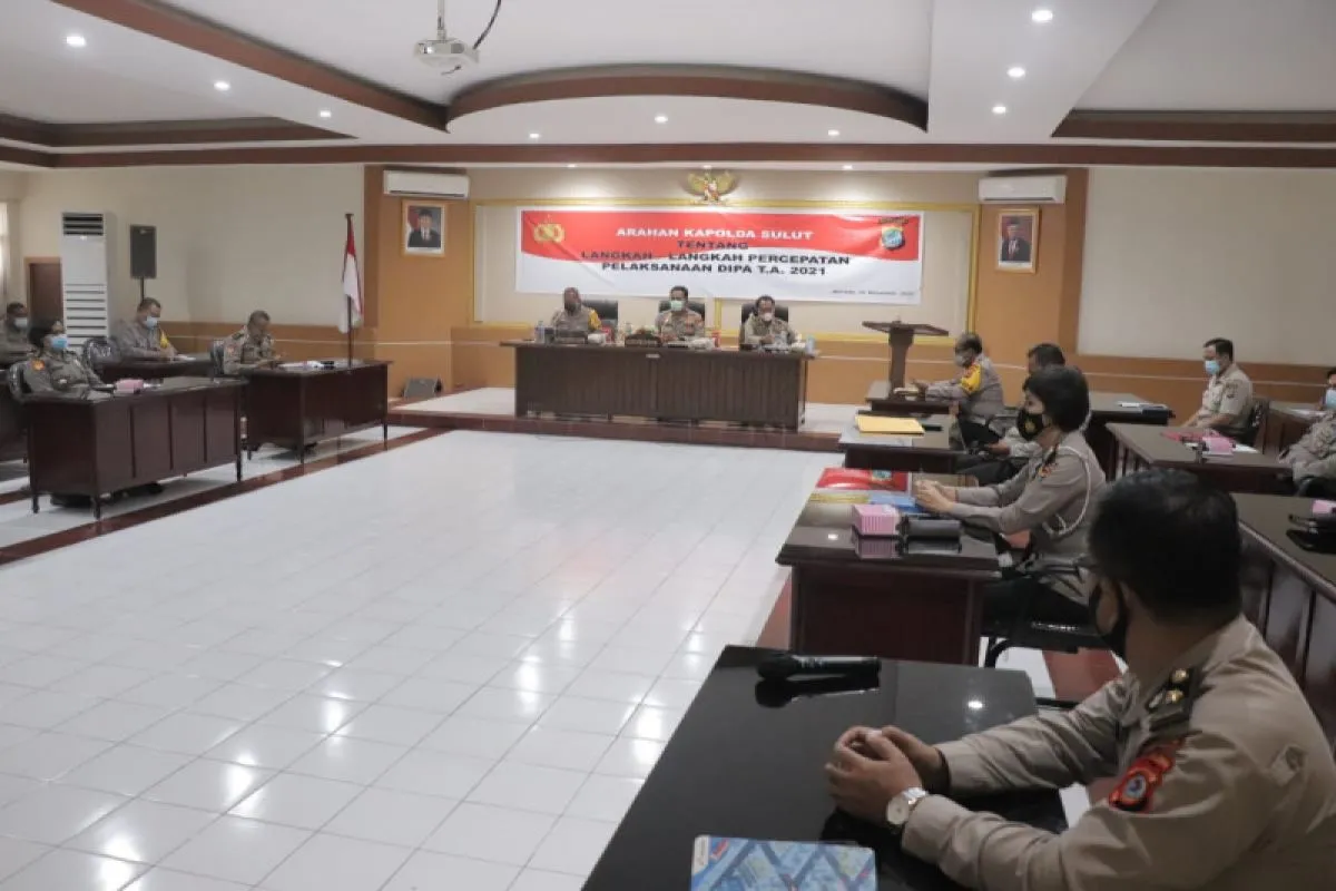 Manado (ANTARA) - Kapolda Sulut Irjen Pol RZ Panca Putra melalui Wakapolda Brigjen Pol Rudi Darmoko terus mendorong seluruh Satker dan Satwil di jajaran agar melaksanakan DIPA Tahun 2021 dengan baik dan benar.