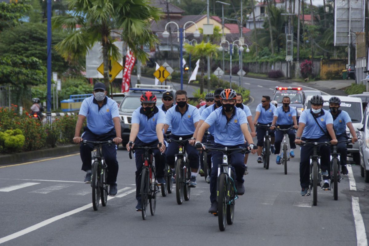 Kegiatan dimulai pukul 06.30 Wita tersebut terbagi menjadi dua rute yaitu rute sepeda melewati jalan A.A Maramis memutar menuju Desa Mapanget.