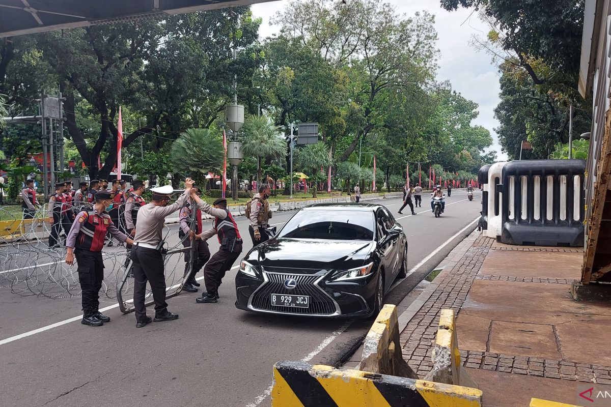 Jakarta (ANTARA) - Polda Metro Jaya menutup Jalan Medan Merdeka dari arah Bundaran Patung Kuda menuju Harmoni dan sebaliknya dalam rangka pengamanan demo mahasiswa pada Kamis sore.