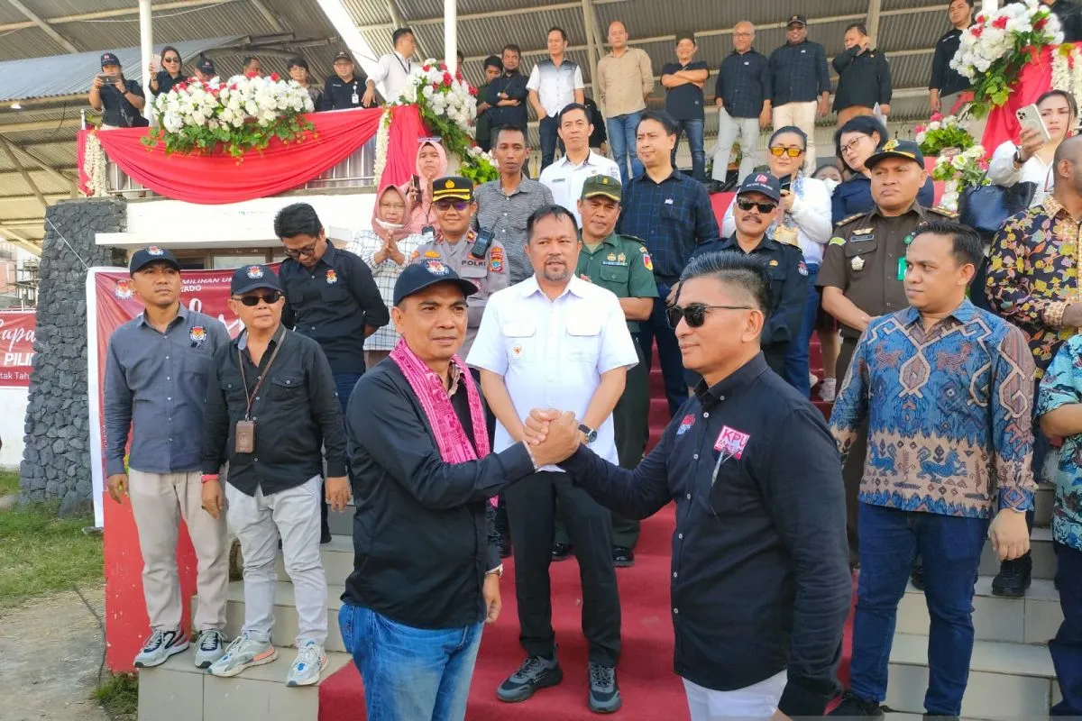 Manado (ANTARA) - KPU Kota Manado didampingi Forkopimda setempat, Rabu sore, menerima bendera Parpol peserta pemilihan umum yang dibawa langsung ketua KPU Bitung Deslie Sumampouw, Bitung, di lapangan Sparta Tikala, menandai dimulainya Kirab Pemilu 2024.