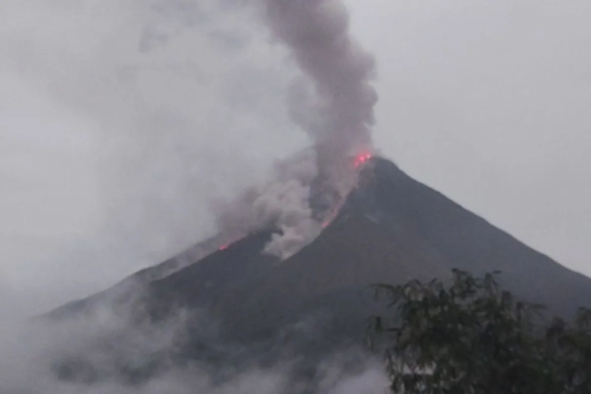 "Sinar api kawah dua sekitar 10 meter di dalam tiang kolom asap putih sedang, tekanan asap sedang sekitar 50 meter, sedangkan api diam/bara api teramati di dinding kubah lava," ujarnya.