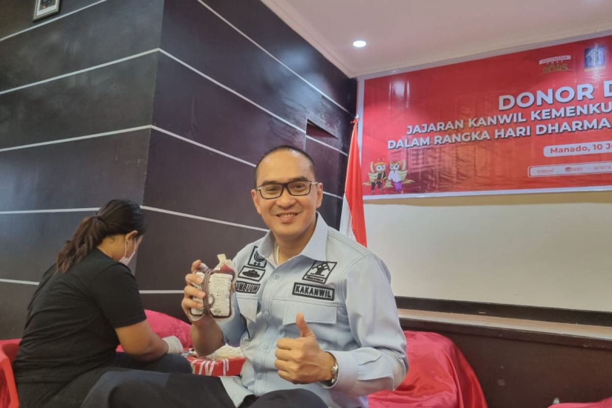 Manado (ANTARA) - Kantor Kementerian Hukum dan Hak Asasi Manusia (Kemenkumham) Sulawesi Utara (Sulut) melaksanakan donor darah menyambut Hari Dharma Karya Dhika (HDKD) ke-78, di Manado. Senin.