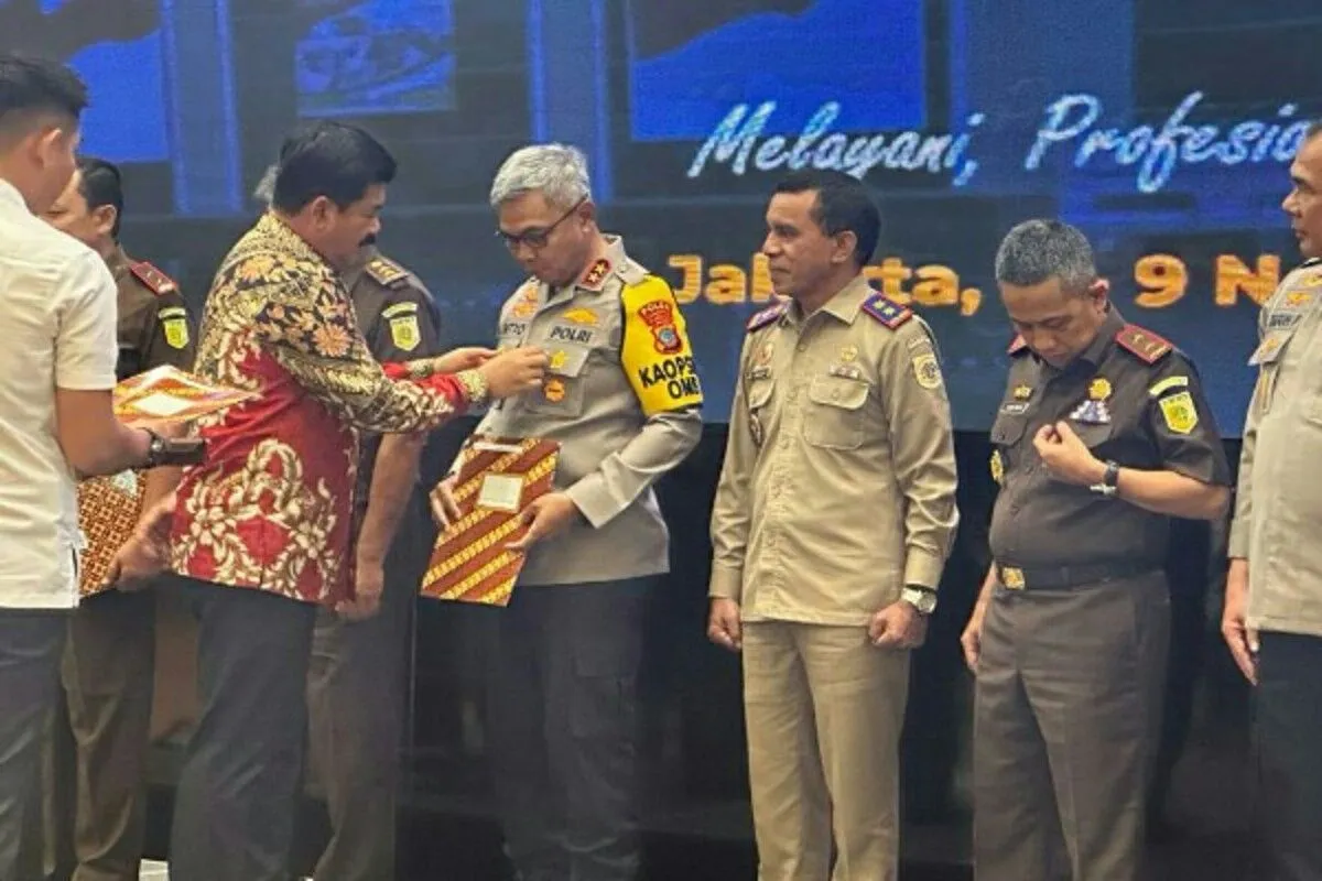 Kapolda Sulut Irjen Pol Setyo Budiyanto menerima penghargaan dan Pin Emas dari Menteri ATR /BPN Hadi Tjahyanto. ANTARA/HO-Humas Polda Sulut (1)