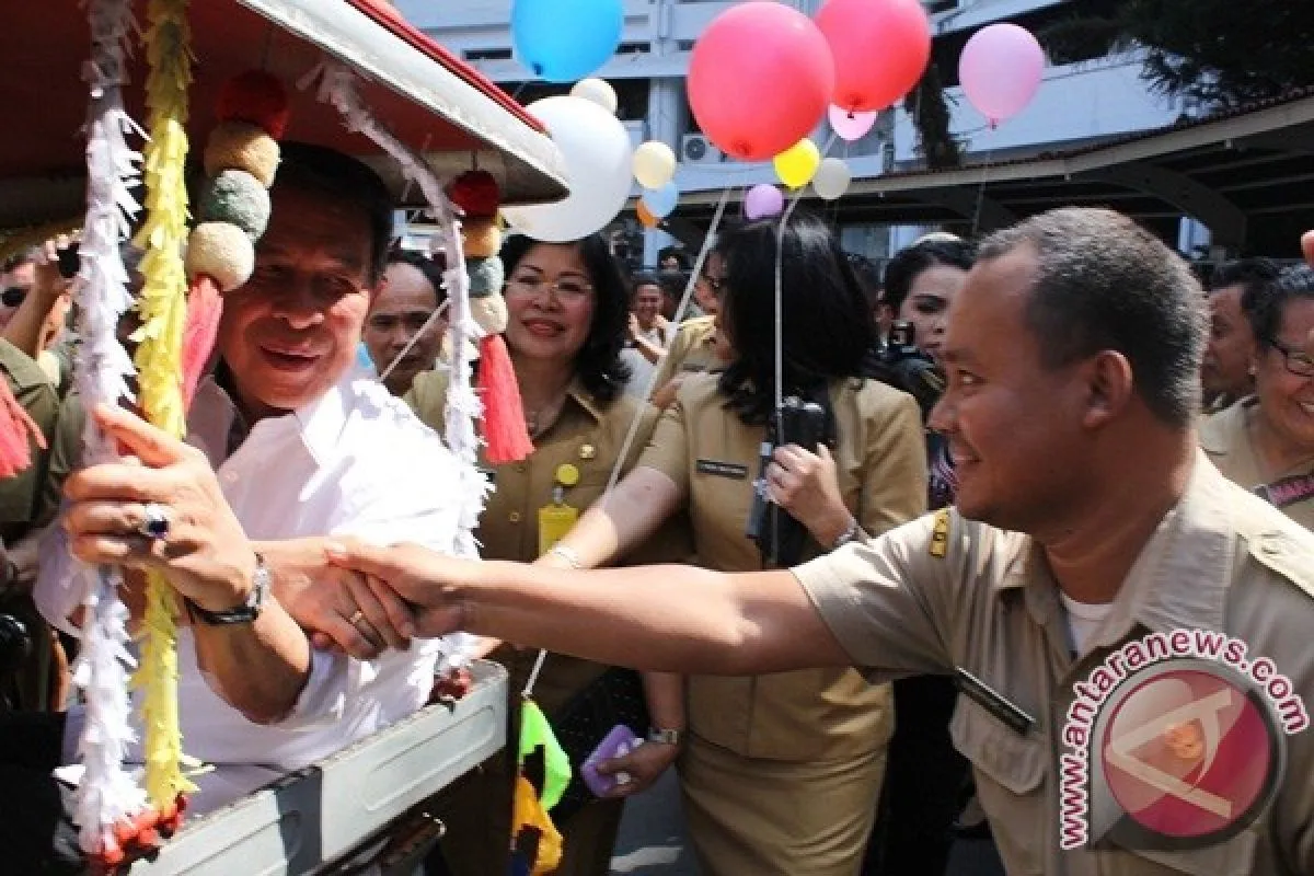 Manado, (AntaraSulut) - Suasana haru penuh bahagia dan bangga menyelimuti kantor gubernur sulut Rabu, (30/9) pagi saat ribuan pegawai melepas purna tugas Gubernur Sulut periode 2005-2015 DR Sinyo Harry Sarundajang dan Wakil Gubernur Sulut periode 2010-2015 DR Djouhari Kansil.