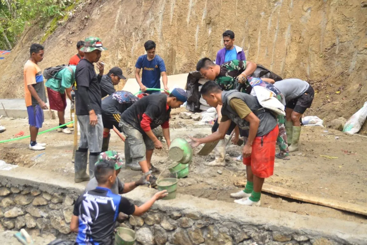 "Masyarakat sangat antusias membantu personel satgas menyelesaikan pembangunan akses jalan tersebut," katanya.
