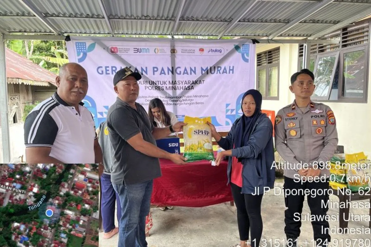 Manado (ANTARA) - Polres Minahasa bersama Bulog menjual beras Program Stabilisasi Pasokan dan Harga Pangan (SPHP) langsung kepada masyarakat, di Kabupaten Minahasa, Provinsi Sulawesi Utara (Sulut).