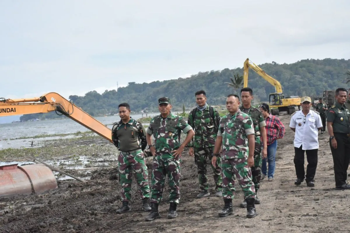Pangdam XIII/Merdeka Mayjen TNI Suhardi meninjau langsung progres pemeliharaan danau yang melibatkan penggunaan alat berat.
