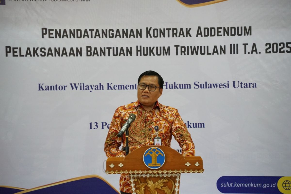 Manado (ANTARA) - Kemenkum Sulawesi Utara memperkuat program layanan bantuan hukum bagi masyarakat miskin setelah ditandatangani kontrak addendum pelaksanaan bantuan hukum triwulan III tahun anggaran 2025 dengan 13 Pemberi Bantuan Hukum (PBH) terakreditasi dengan mitra.