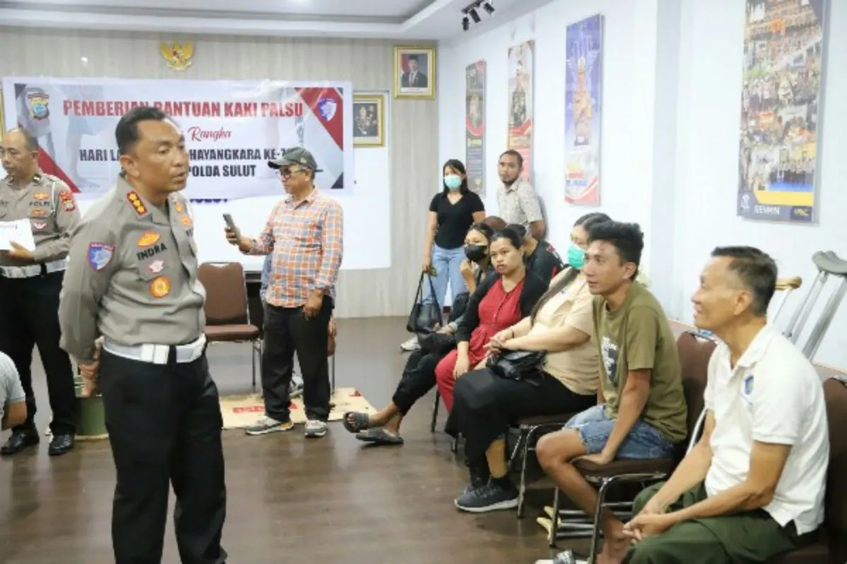 Manado (ANTARA) - Direktorat Lalu Lintas (Ditlantas) Polda Sulawesi Utara memberikan bantuan kaki palsu menyambut Hari Lalu Lintas, kata Direktur Lalu Lintas Polda Sulut Kombes Pol Indra Kurniawan Mangunsong.