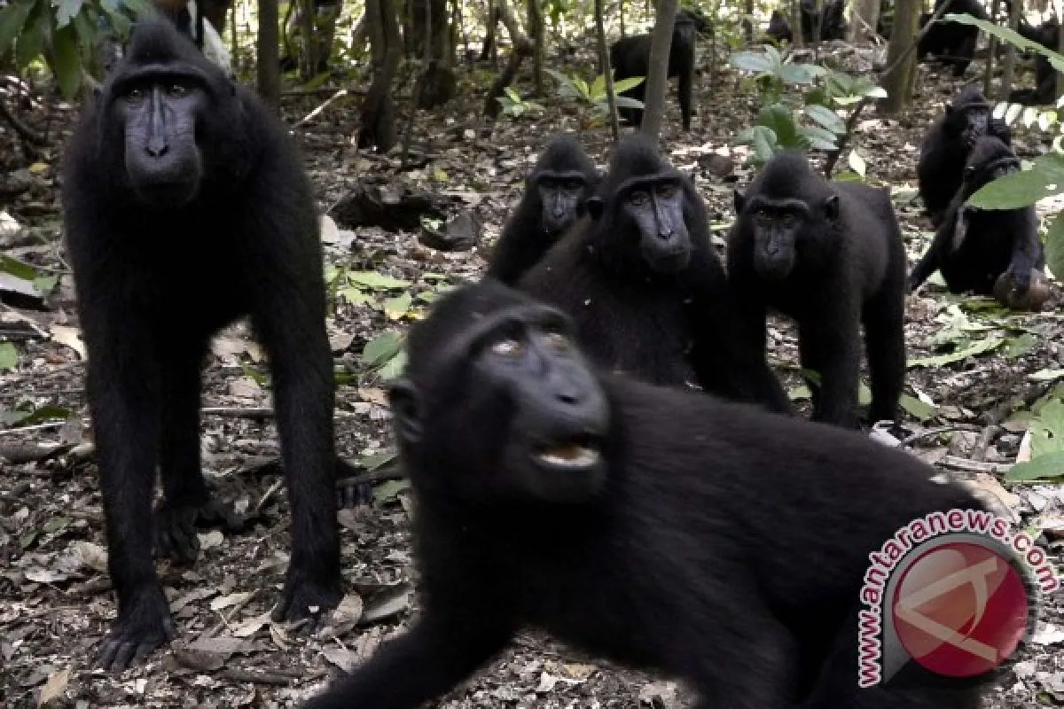 Seekor Yaki bereaksi dengan keberadaan manusia di kawasan Hutan Lindung Gunung Tangkoko Batuangus, Bitung, Sulawesi Utara, Sabtu (12/3). Yaki atau Monyet Jambul Hitam (Macaca Nigra) merupakan satu dari tujuh jenis monyet endemik Sulawesi dan hanya berada di Sulawesi Utara. Populasi Yaki saat ini semakin berkurang akibat pembakaran lahan, perburuan, perluasan wilayah tambang, serta untuk di konsumsi masyarakat. ANTARA FOTO/Adwit B Pramono/16.