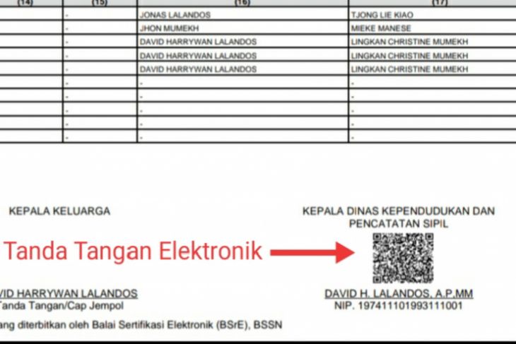 "Kami sudah memulai penerapan tanda tangan elektronik untuk dokumen kependudukan, dan dimulai diuji cobakan pada penerbitan kartu keluarga dan akte kelahiran," kata Kepala Disdukcapil Minahasa Tenggara David Lalandos di Ratahan, Rabu.