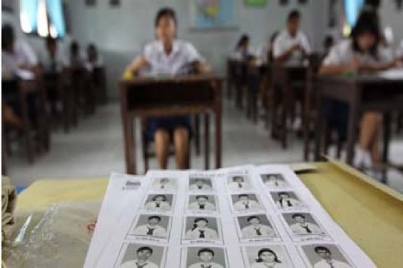 MANADO, 29/3- UNAS SMP . Sejumlah siswa mengikuti Ujian Nasional (Unas) pada hari pertama di SMPN 9 Manado, Senin ( 29/3). Sebanyak 7.265 siswa SMP/MTs se - kota Manado mengikuti Ujian Nasional dengan mata pelajaran Bahasa Indonesia. FOTO ANTARAManado/Basrul Haq/10.